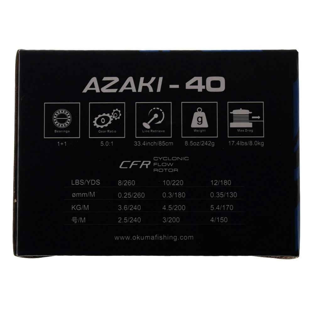 Okuma 40B Azaki Spinning Softbait Reel Specifications: