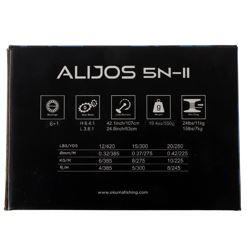 Okuma Alijos 5 Narrow 2-Speed Lever Drag Reel Specifications: