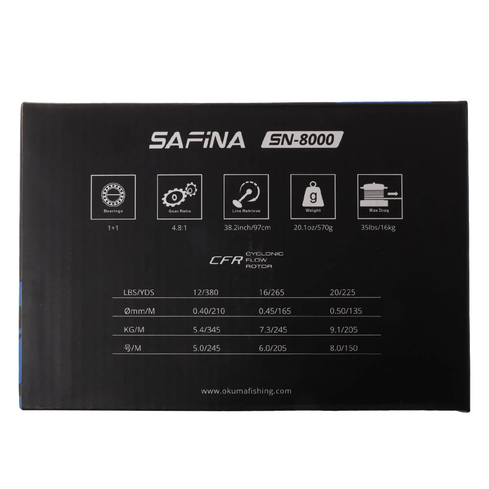 Okuma Safina 8000 Spinning Reel Specifications:
